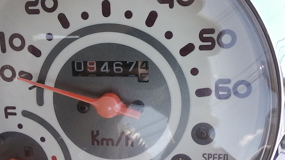 バイクの走行距離に関して:古いスクーターの多くのオドメーターには4ケタが採用されています、この4ケタメーターの場合最高の表示距離は、9999Kmで