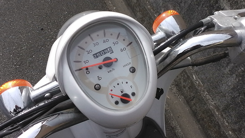バイクの走行距離に関して:古いスクーターの多くのオドメーターには4ケタが採用されています、この4ケタメーターの場合最高の表示距離は、9999Kmで