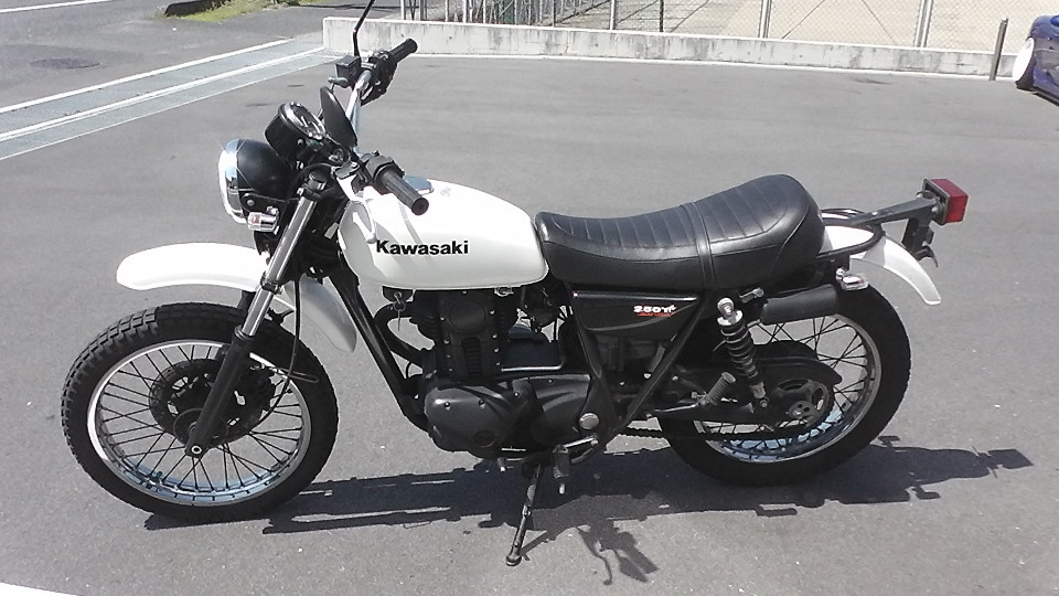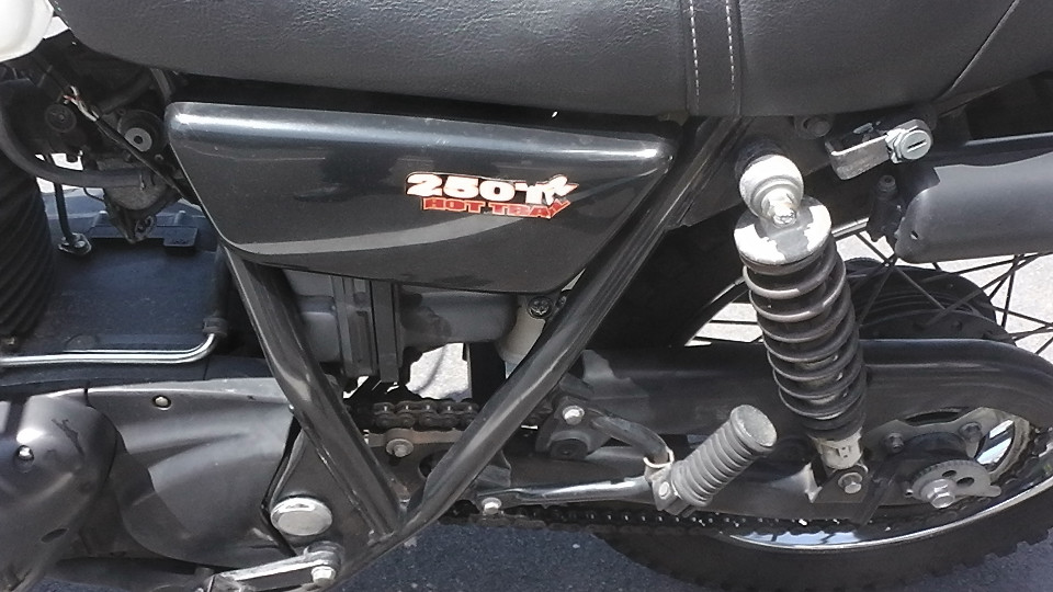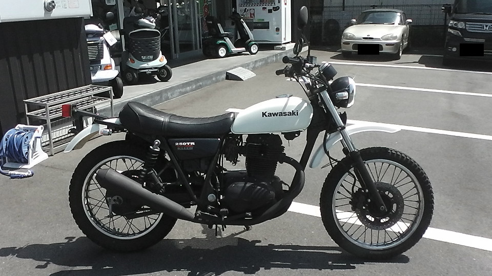 商品ID:1618807841:70年代を彷彿とさせるビンテージ感漂うオフ車のスタイルが人気の250TR。車体も軽く、取り回しもしやすいので250ccクラスに初めて乗る方や女性にも扱いやすいです。