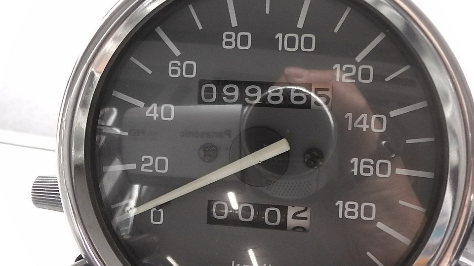 そのあとは0Kmに戻ってしまいます。つまり4ケタオドメーターのバイクは何回か0に戻っている可能性が否定できません。よって当社では走行距離の欄に?をつけています。
