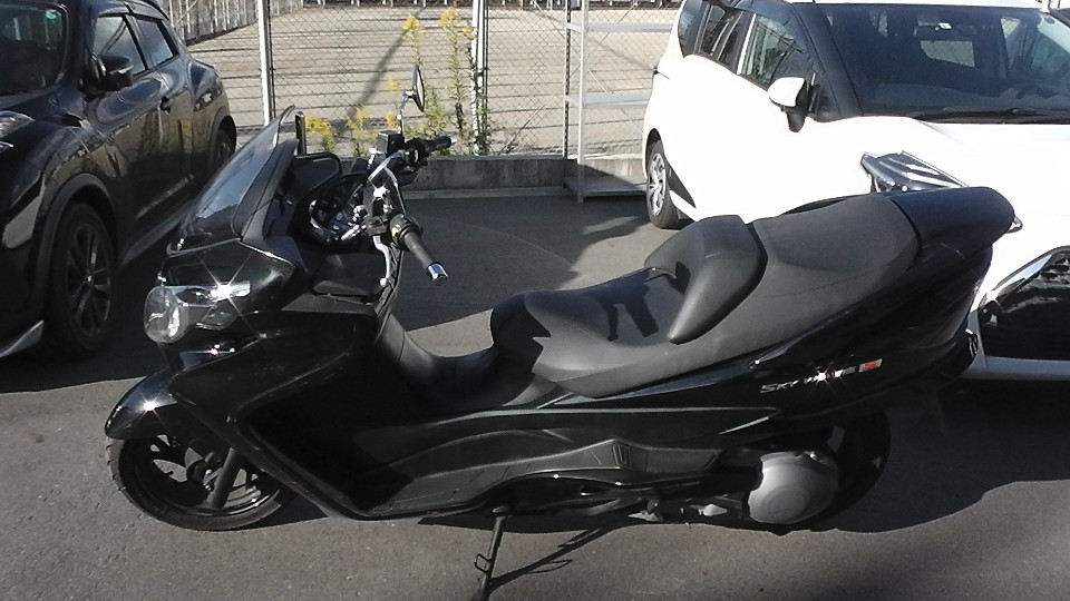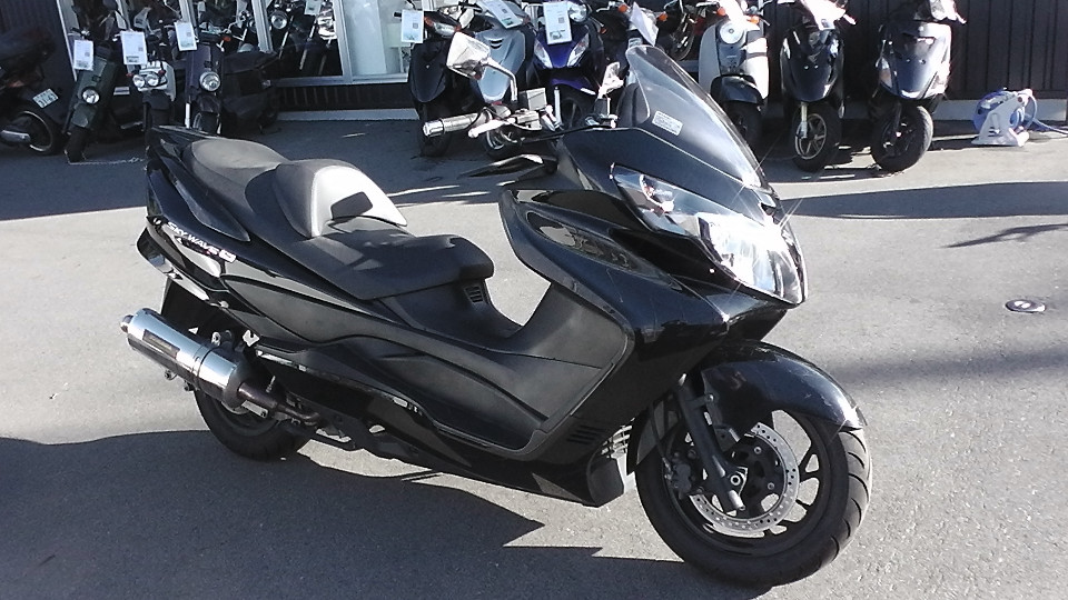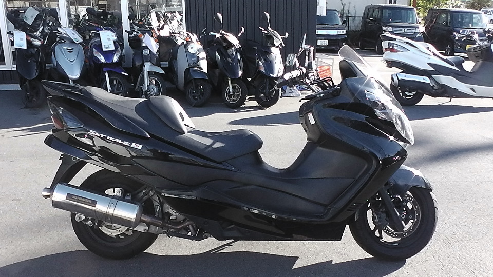 商品ID:1634715653:ポケットに入れたままでの操作も可能なキーレススタートシステムを搭載。高速道路での二人乗り時でも余裕のある走行を実現させるスカイウェイブです。YOSHIMURAマフラー。