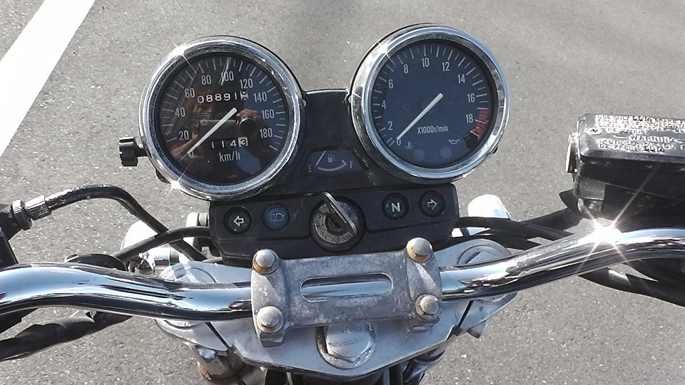そのあとは0Kmに戻ってしまいます。つまり4ケタオドメーターのバイクは何回か0に戻っている可能性が否定できません。よって当社では走行距離の欄に?をつけています。