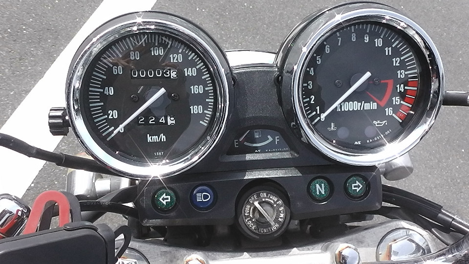 そのあとは0Kmに戻ってしまいます。つまり4ケタオドメーターのバイクは何回か0に戻っている可能性が否定できません。よって当社では走行距離の欄に?をつけています。