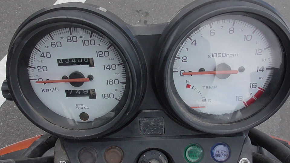 バイクの走行距離に関して:古いスクーターの多くのオドメーターには4ケタが採用されています、この4ケタメーターの場合最高の表示距離は、9999Kmで