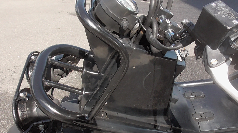 商品ID:1697081238:「ラフ」、「タフ」、「武骨」をキーワードに開発された無骨で個性的なスクーターです。他にないスタイルで存在感があります。スライド調整式のシート、跳ね上げるとバックレストになるタンデムシートなどで実用性も高くなっています。跳ね上げたタンデムシートの下はキャリアスペースとして使用でき、ヘッドライト上にも小型キャリアが備わっています。社外マフラー。