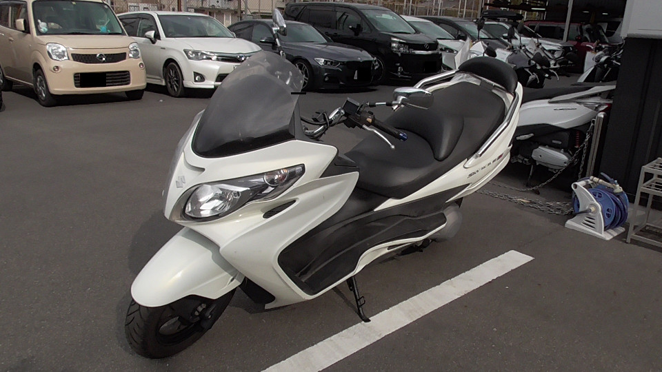 商品ID:1701230172:スポーティーなデザインがかっこいいスカイウェイブタイプS。快適性とスポーツ性を両立した走行性能は、街乗りでも高速でも乗り手を気持ちよく運んでくれるほか、ゆったりしたシートで快適なツーリングが楽しめます。タンデム走行も楽々です!BEAMSマフラー。