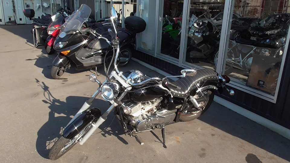 商品ID:1726211745:250ccには見えない伸びやかなスタイリングが優雅で格好良く人気です!ゆったりとした乗り味と迫力のあるエンジン音も魅力。低めのシート高で足付きもよく車体も軽いため、女性でも取り回しが楽です。スラッシュカットマフラー。社外シートシングルシート仕様