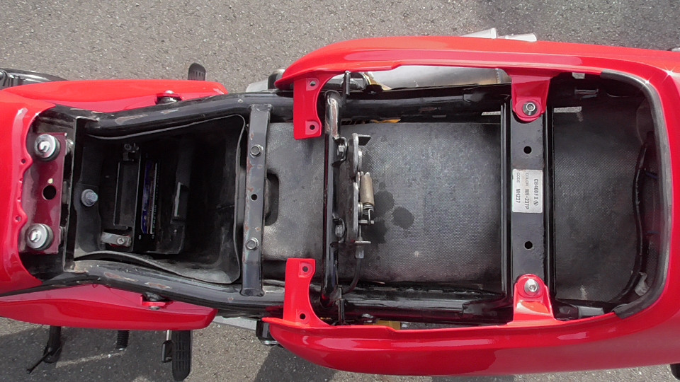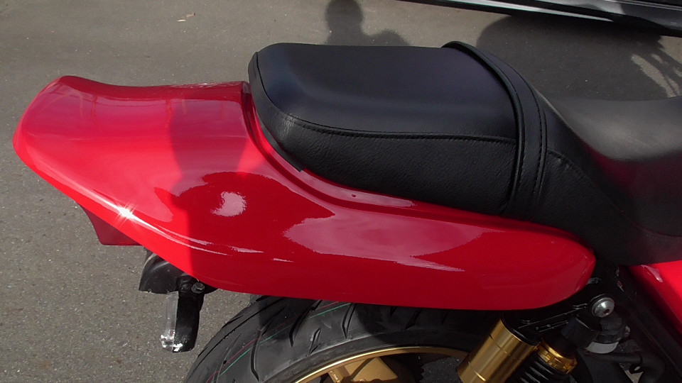 商品ID:1759129820:鮮やかなレッドと金のホイールが魅力的!トータルバランスが良く、気軽な街乗りからロングツーリンも快適にこなし、時代を超えて多くのライダーに愛されています。初心者の方や女性にもおすすめです!フェンダーレス仕様。リアサス、ウインカーなどカスタムパーツ有。キー1本。