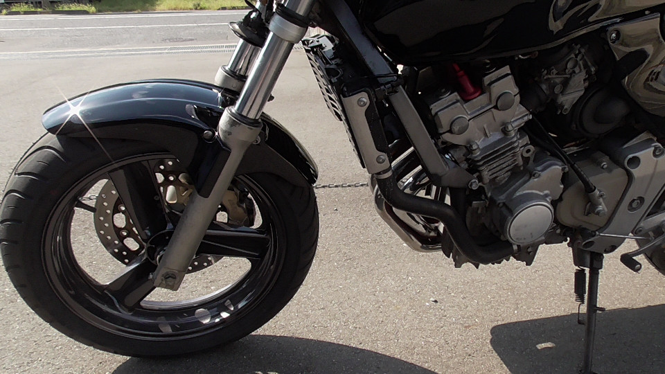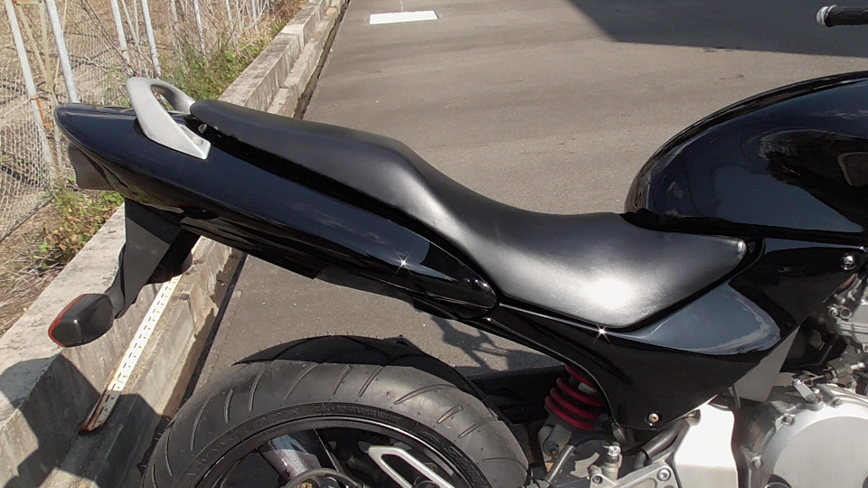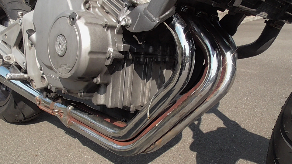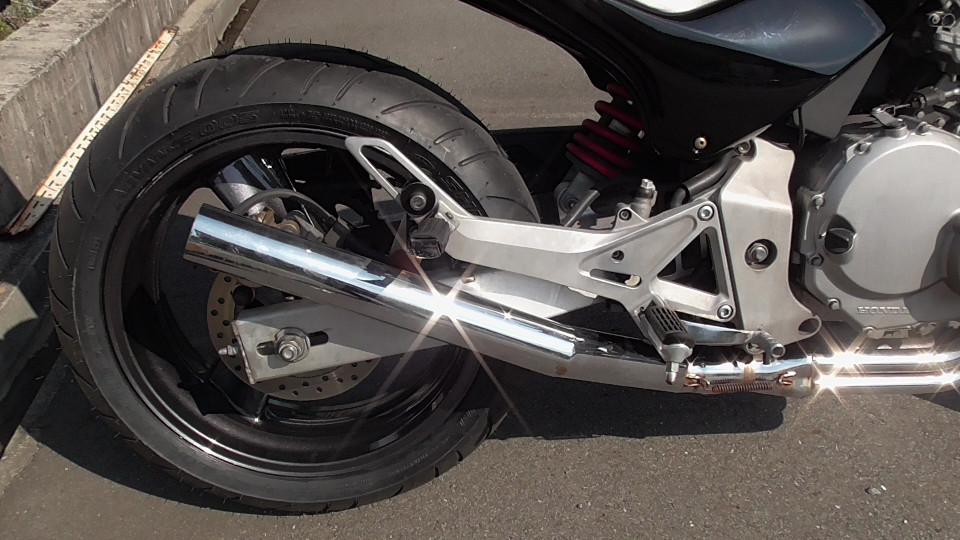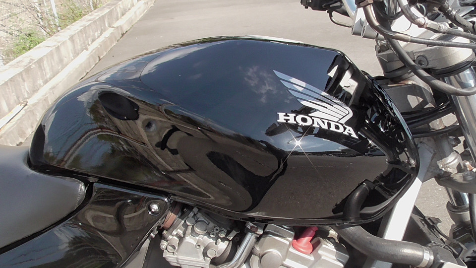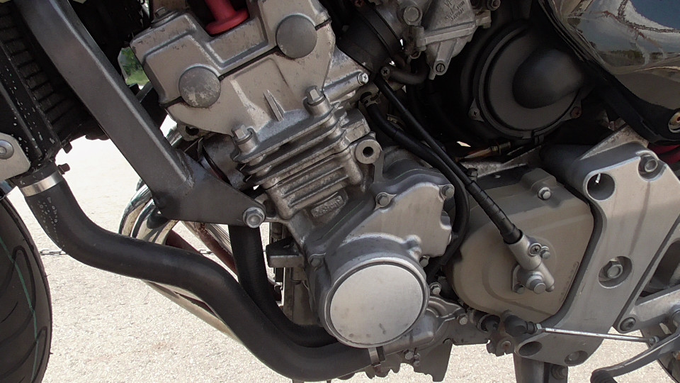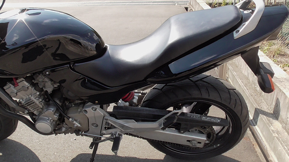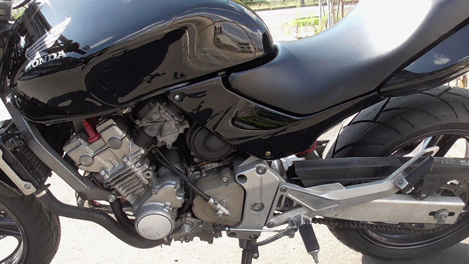 商品ID:1759294429:最安値に挑戦する、サウンドはバリオス、ふりかえればホーネット、バイクシティがお届けします。スポーツネイキッドの定番!人気のホーネット!見た目のかっこよさだけでなく、性能面も優れており、完成度の高いバイクです。社外集合管マフラー、LEDウインカー、テール。メーター交換タコメータースケール違いにつきレッドゾーンで走行OK。メーター交換前18721km。キャスター立ち気味