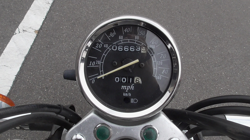 そのあとは0Kmに戻ってしまいます。つまり4ケタオドメーターのバイクは何回か0に戻っている可能性が否定できません。よって当社では走行距離の欄に?をつけています。