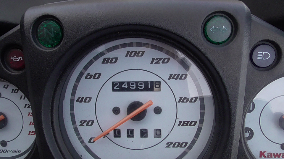 バイクの走行距離に関して:古いスクーターの多くのオドメーターには4ケタが採用されています、この4ケタメーターの場合最高の表示距離は、9999Kmで