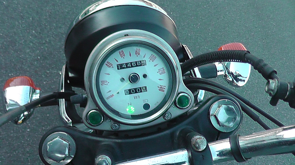 そのあとは0Kmに戻ってしまいます。つまり4ケタオドメーターのバイクは何回か0に戻っている可能性が否定できません。よって当社では走行距離の欄に?をつけています。