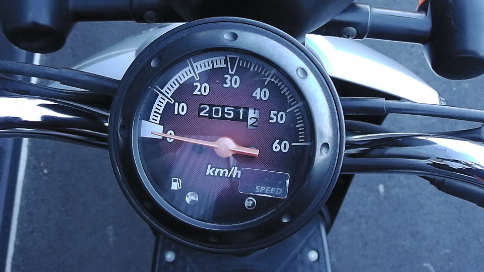バイクの走行距離に関して:古いスクーターの多くのオドメーターには4ケタが採用されています、この4ケタメーターの場合最高の表示距離は、9999Kmで