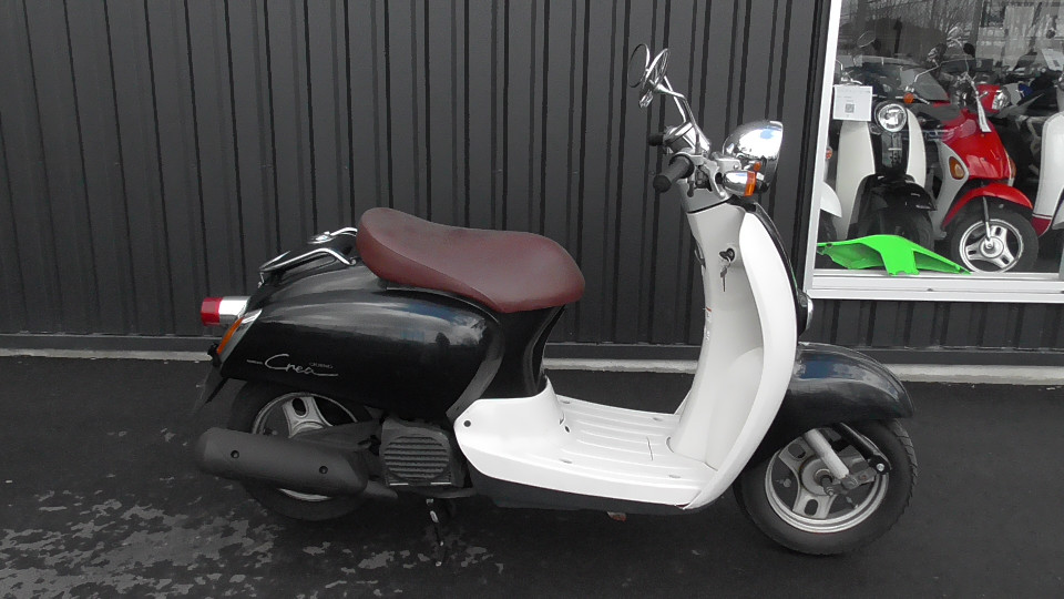 商品ID:1582684656:前後連動ブレーキを採用するなど、ビギナーでも安心して楽しめるスクーター。全体に流麗なデザインを採用し、ツートーンのカラーリングとあいまってファッショナブルで高級感を醸しだしている。
