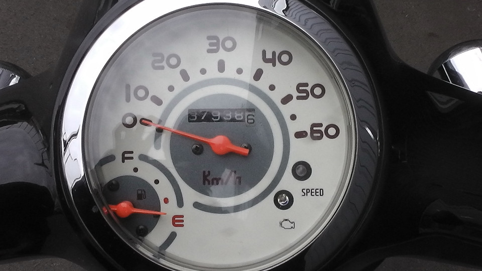 バイクの走行距離に関して:古いスクーターの多くのオドメーターには4ケタが採用されています、この4ケタメーターの場合最高の表示距離は、9999Kmで