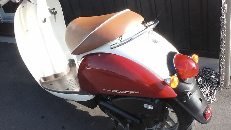 商品ID:1583220236:可愛いデザインで女性に人気のスクーピー。軽くて扱いやすい上、シート下収納やコンビニフック付きで利便性が良く、初めてスクーターを購入する方にもおすすめの1台です。アイドリングストップ機能・デジタルメーター