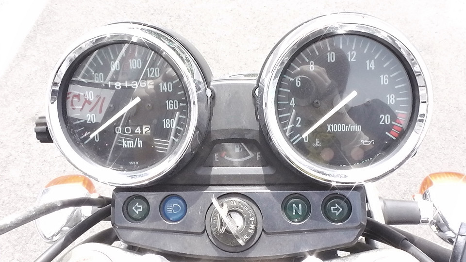 そのあとは0Kmに戻ってしまいます。つまり4ケタオドメーターのバイクは何回か0に戻っている可能性が否定できません。よって当社では走行距離の欄に?をつけています。