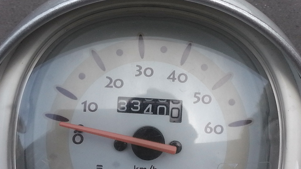 バイクの走行距離に関して:古いスクーターの多くのオドメーターには4ケタが採用されています、この4ケタメーターの場合最高の表示距離は、9999Kmで