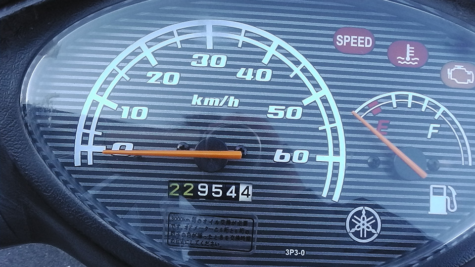 バイクの走行距離に関して:古いスクーターの多くのオドメーターには4ケタが採用されています、この4ケタメーターの場合最高の表示距離は、9999Kmで