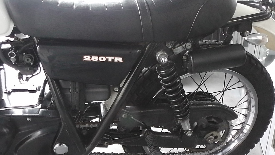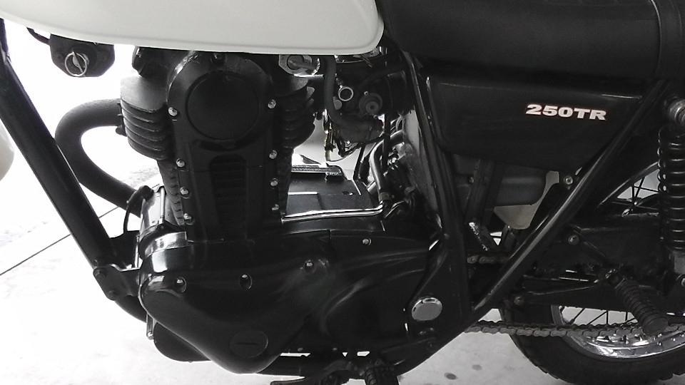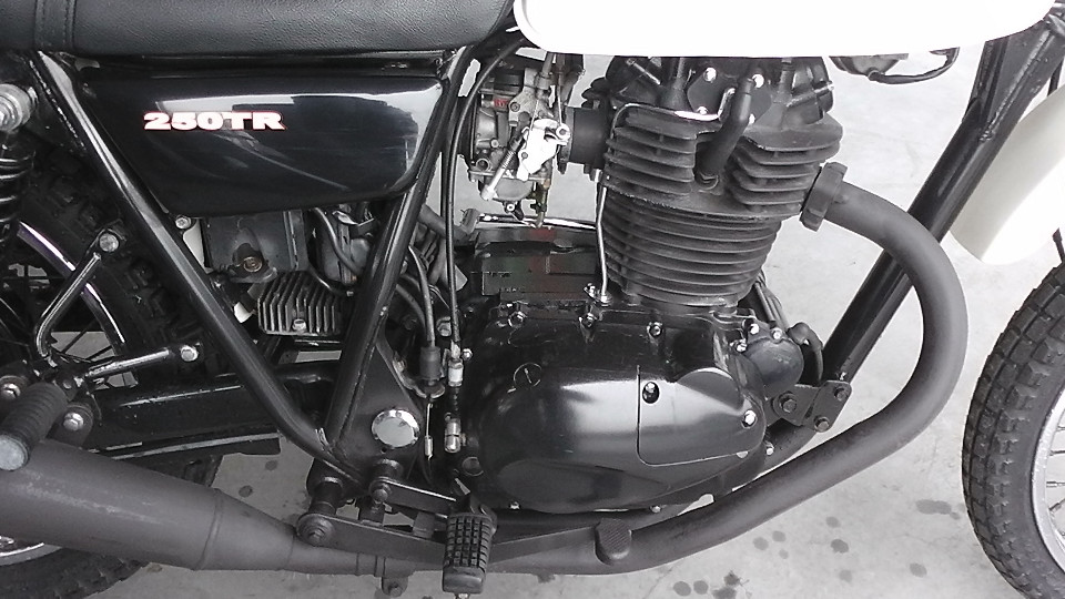 商品ID:1611645923:ビンテージ感漂うオフロードスタイルが魅力の250TR。車体も軽く、取り回しもしやすいので初心者の方にもおすすめです。テールランプ社外。