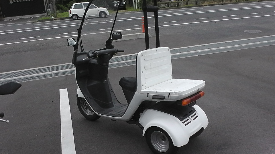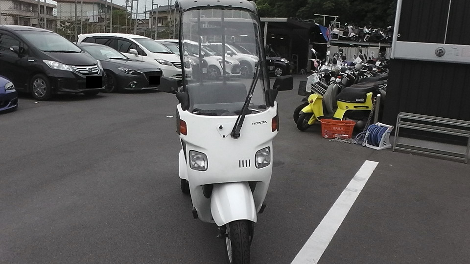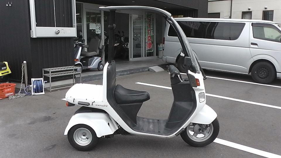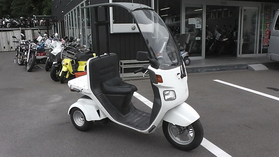 商品ID:1624860335:四輪で安定感のある走りが可能。電動ワイパー付き大型ウインドスクリーンやルーフを装備し、雨天の走行のしやすさも特徴です。デリバリー業界御用達とも呼ばれています。