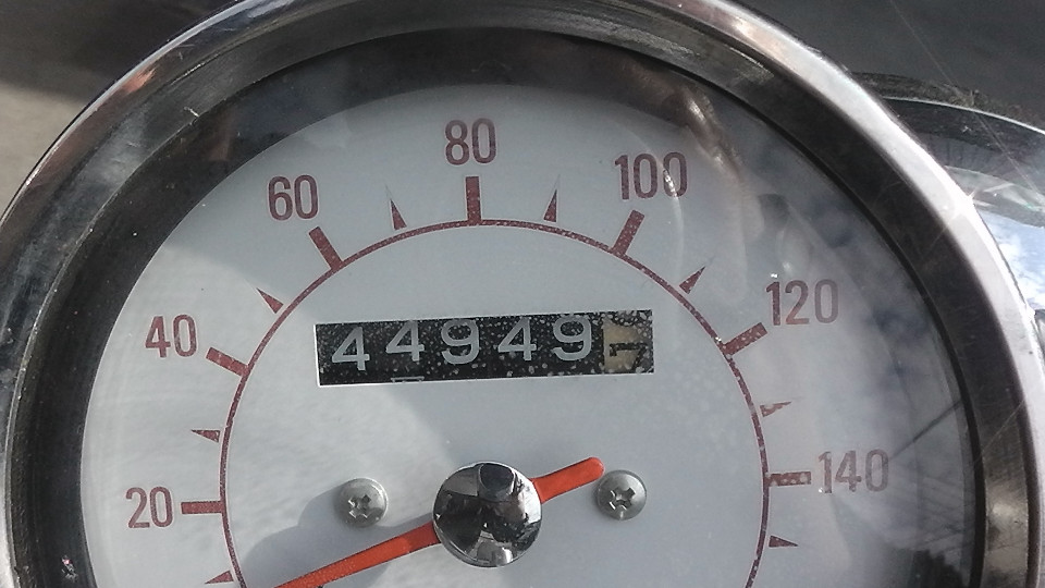 そのあとは0Kmに戻ってしまいます。つまり4ケタオドメーターのバイクは何回か0に戻っている可能性が否定できません。よって当社では走行距離の欄に?をつけています。