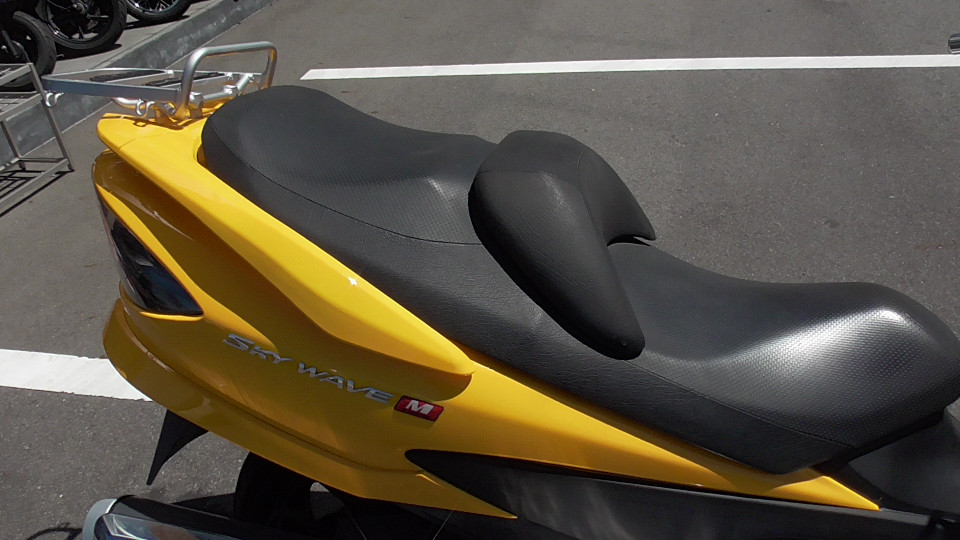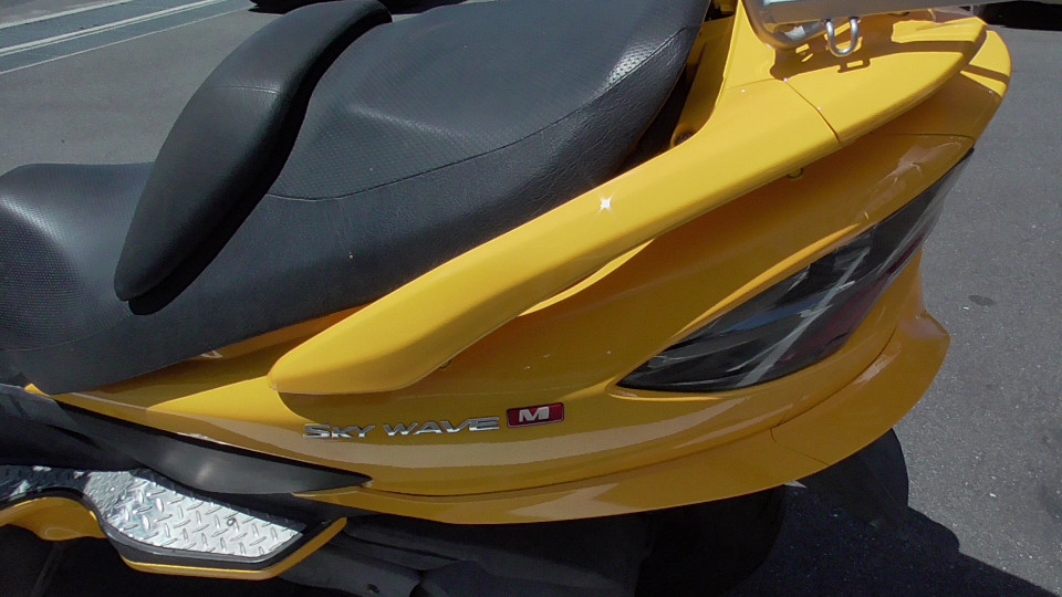 商品ID:1659072430:スポーティーなルックスで人気のスカイウェイブは収納能力や乗り易さに定評のある車種です。ポケットに入れたままでの操作も可能なキーレススタートシステムを搭載しています。高速道路での二人乗り時でも余裕のある走行を実現させます。マニュアルモード付T-SHIFT。