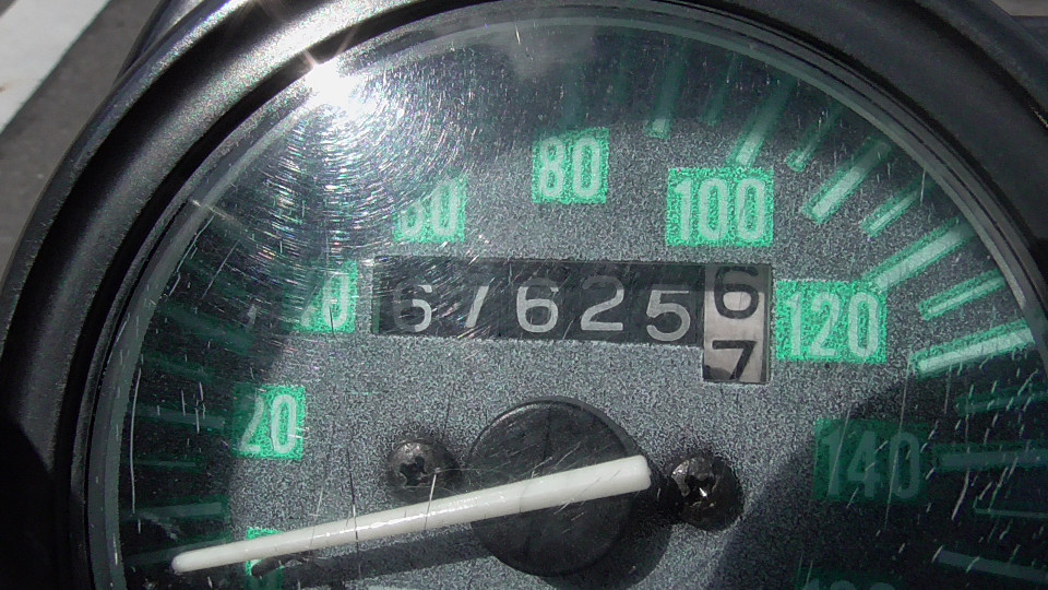 そのあとは0Kmに戻ってしまいます。つまり4ケタオドメーターのバイクは何回か0に戻っている可能性が否定できません。よって当社では走行距離の欄に?をつけています。