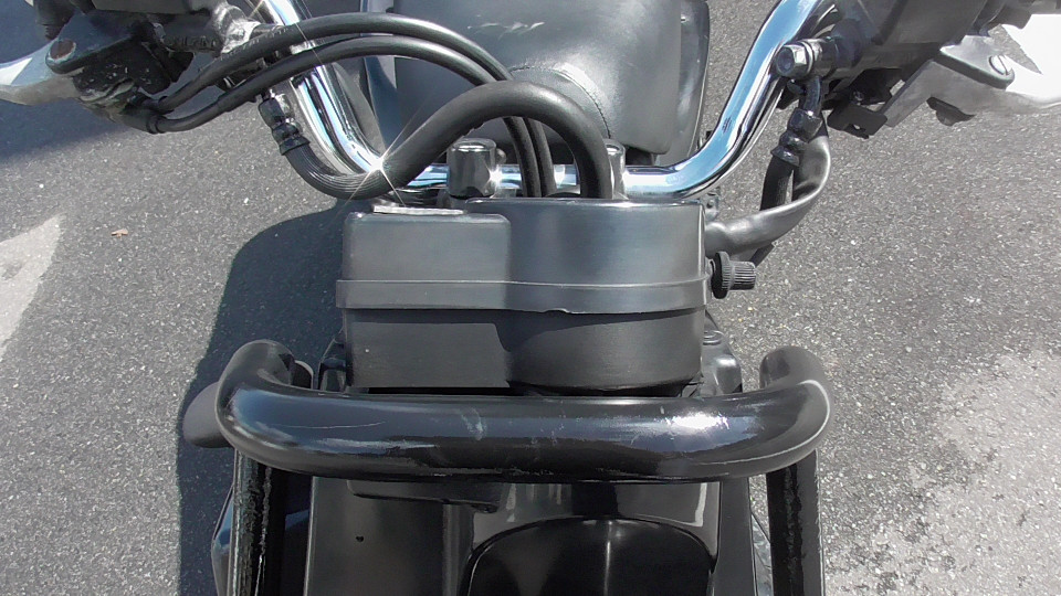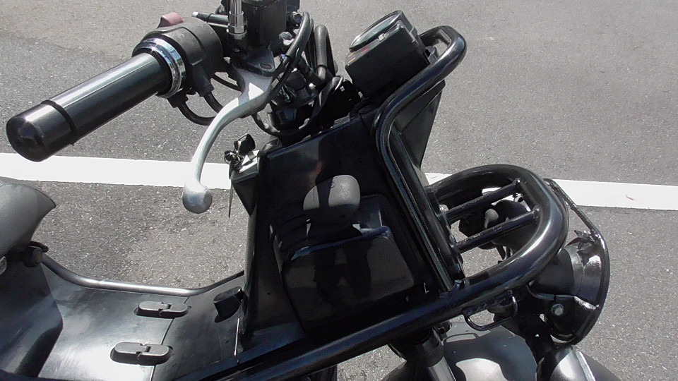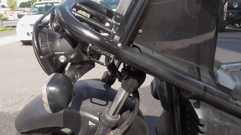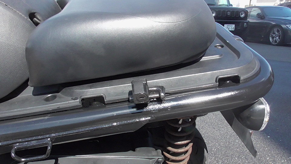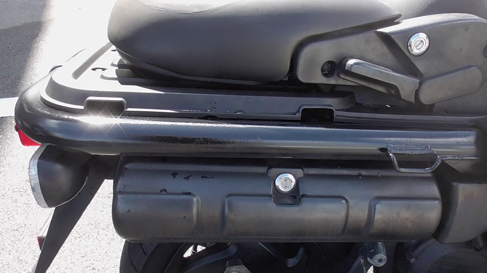 商品ID:1697081238:「ラフ」、「タフ」、「武骨」をキーワードに開発された無骨で個性的なスクーターです。他にないスタイルで存在感があります。スライド調整式のシート、跳ね上げるとバックレストになるタンデムシートなどで実用性も高くなっています。跳ね上げたタンデムシートの下はキャリアスペースとして使用でき、ヘッドライト上にも小型キャリアが備わっています。社外マフラー。