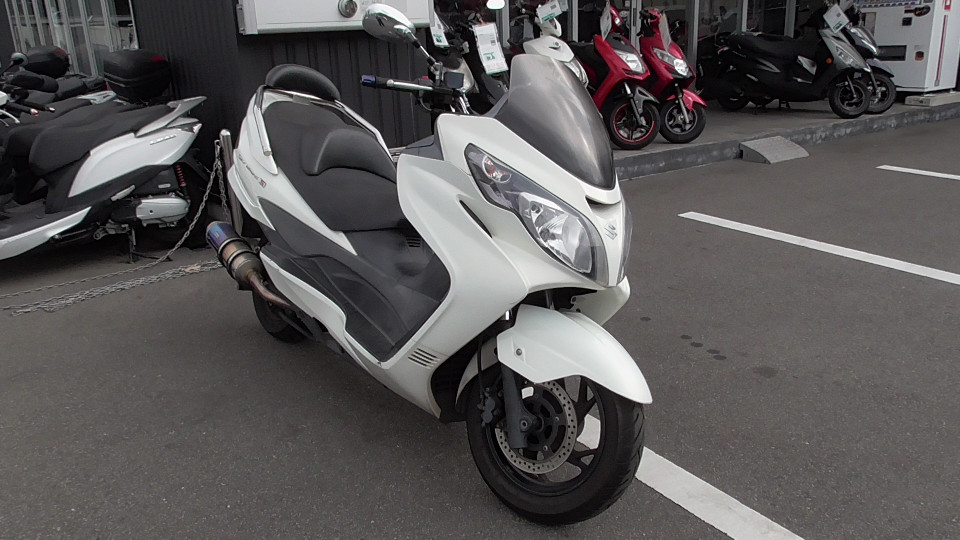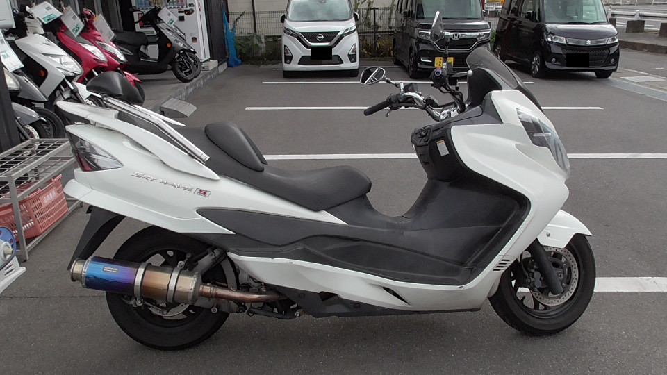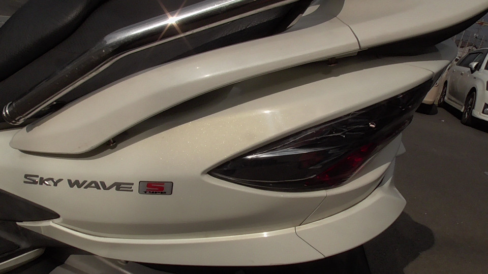 商品ID:1701230172:スポーティーなデザインがかっこいいスカイウェイブタイプS。快適性とスポーツ性を両立した走行性能は、街乗りでも高速でも乗り手を気持ちよく運んでくれるほか、ゆったりしたシートで快適なツーリングが楽しめます。タンデム走行も楽々です!BEAMSマフラー。