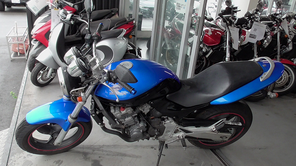 商品ID:1719883884:250ccのスポーツネイキッドの定番で、長く愛され続けているホーネット。ボンキュッボンなグラマラスなボディが特徴的です。見た目だけでなく性能面も優れており、完成度の高いバイクです!テールLED。マフラーSC-PROJECT-CR-T。ニュートラルポジション渋いフューエルメーター誤差あり