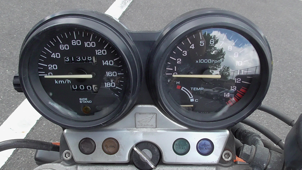 そのあとは0Kmに戻ってしまいます。つまり4ケタオドメーターのバイクは何回か0に戻っている可能性が否定できません。よって当社では走行距離の欄に?をつけています。