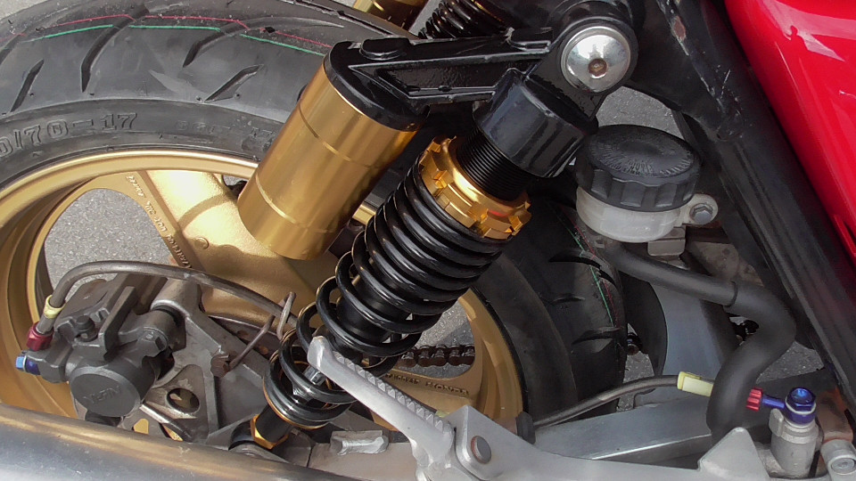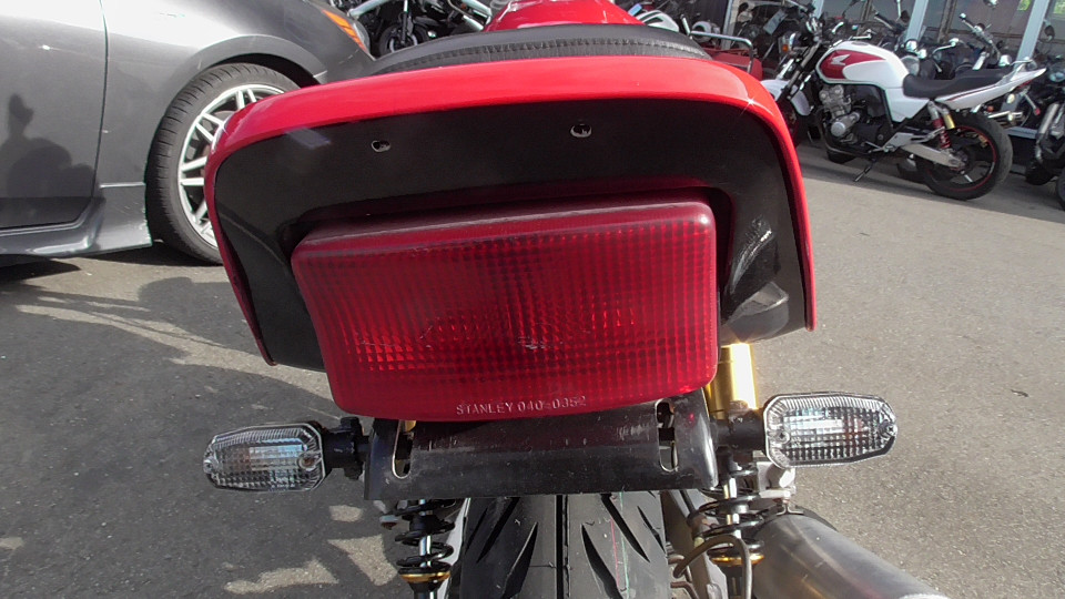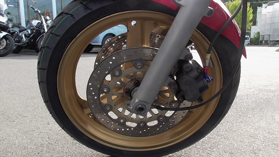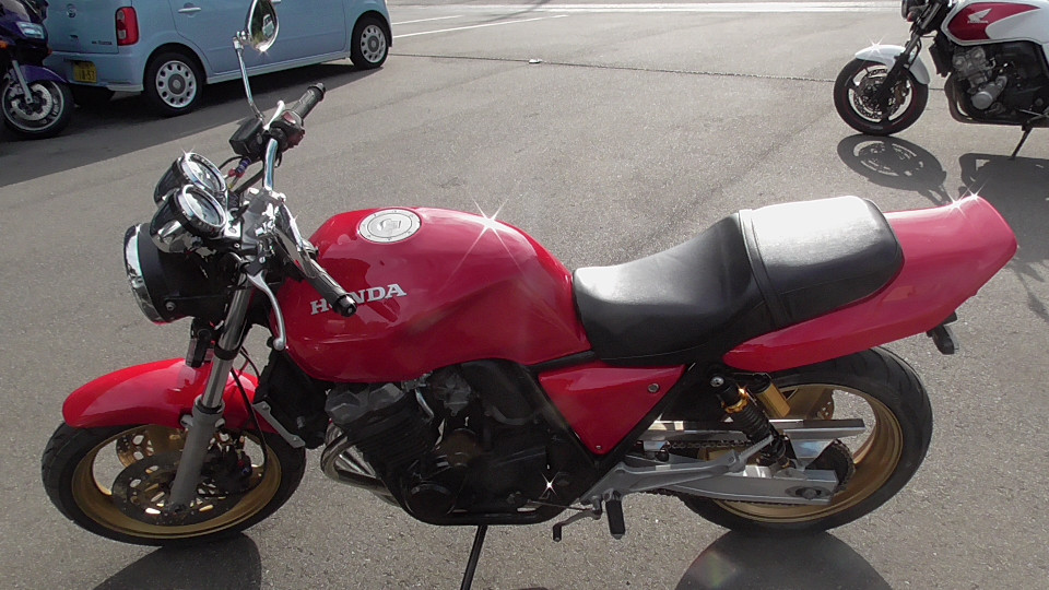 商品ID:1759129820:鮮やかなレッドと金のホイールが魅力的!トータルバランスが良く、気軽な街乗りからロングツーリンも快適にこなし、時代を超えて多くのライダーに愛されています。初心者の方や女性にもおすすめです!フェンダーレス仕様。リアサス、ウインカーなどカスタムパーツ有。キー1本。