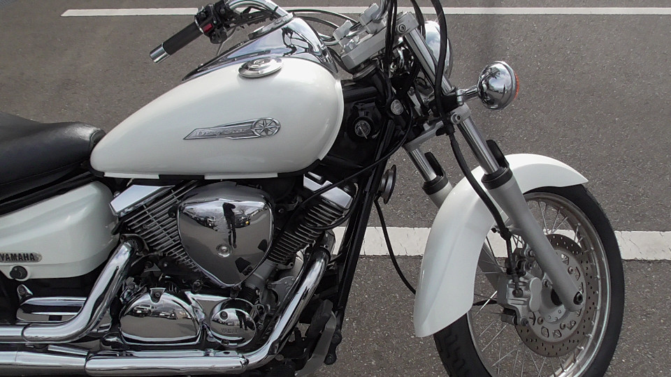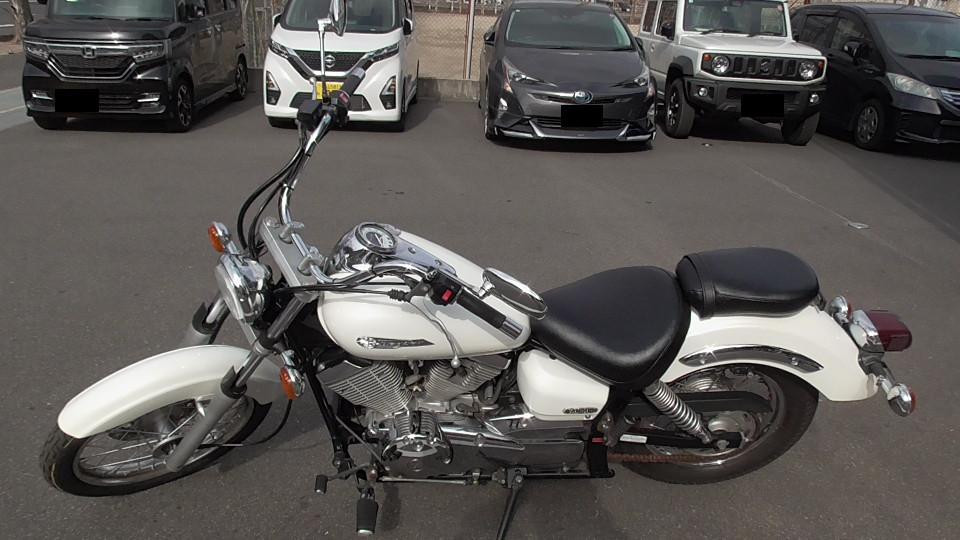 商品ID:1768885028:ホワイトカラーは親しみやすく可愛いアメリカンとして若い女性にも人気!低めのシート高で足付きもよく車体も軽いため、初心者の方の初めてのアメリカンバイクとして最適です。