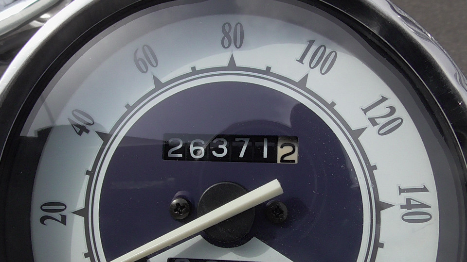 そのあとは0Kmに戻ってしまいます。つまり4ケタオドメーターのバイクは何回か0に戻っている可能性が否定できません。よって当社では走行距離の欄に?をつけています。