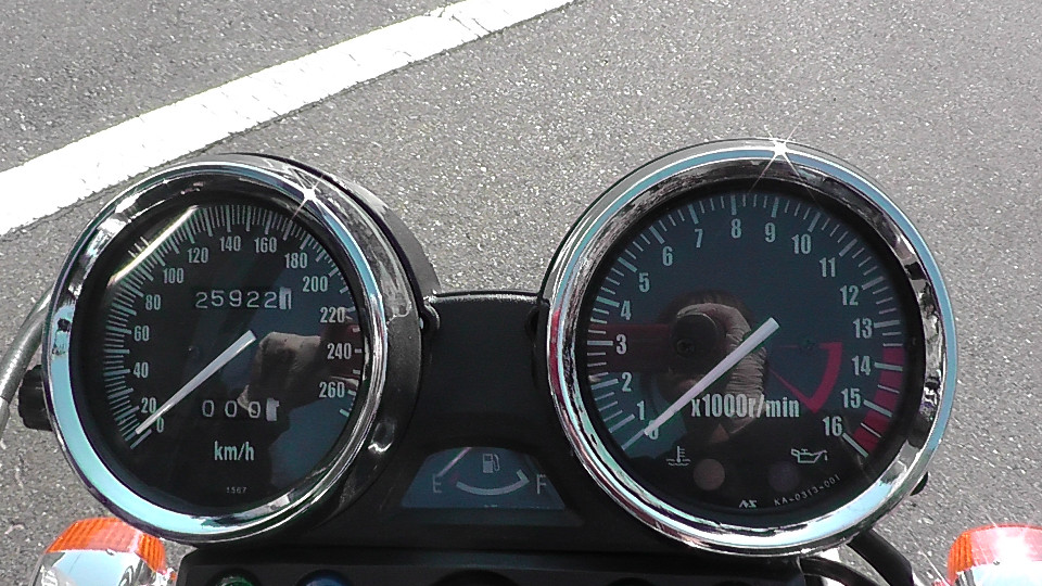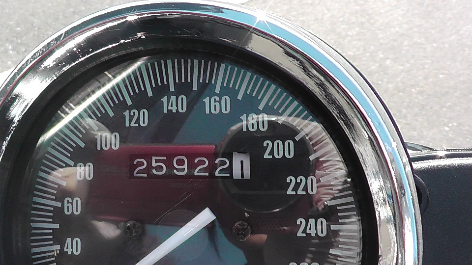 そのあとは0Kmに戻ってしまいます。つまり4ケタオドメーターのバイクは何回か0に戻っている可能性が否定できません。よって当社では走行距離の欄に?をつけています。