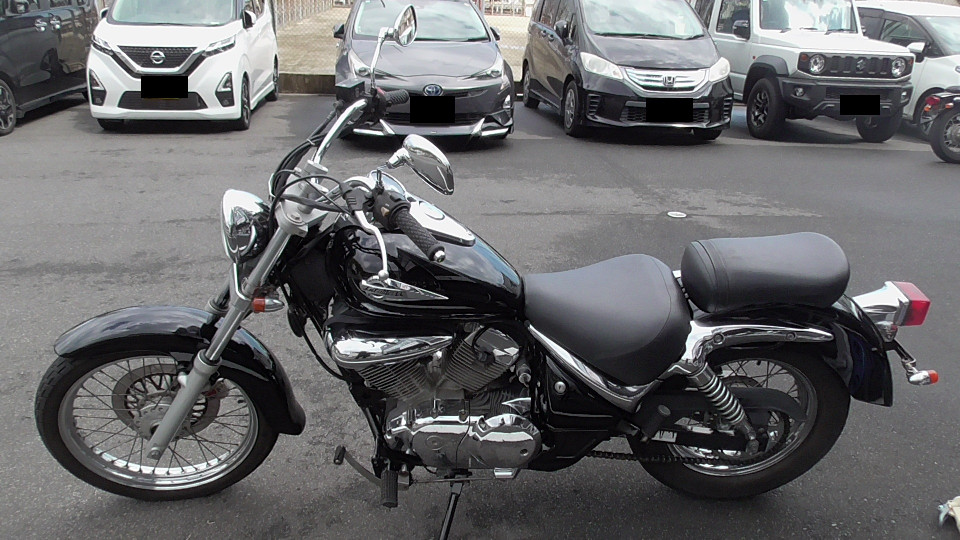 商品ID:1774921339:250ccクラス最大級のロー&ロングな車体とメッキパーツ多用の高級感のある重厚なデザインが魅力。タンク、カウル綺麗です。低シート高で足つきが良く、見た目の大きさの割に小回りが利き取り回しもしやすいです。社外マフラー。