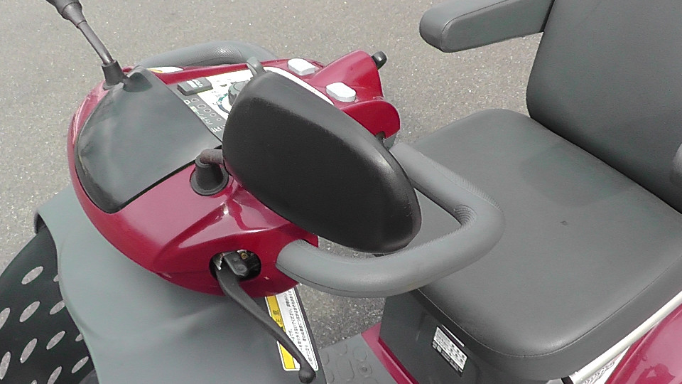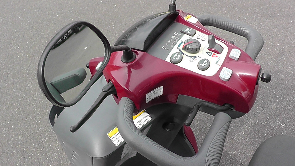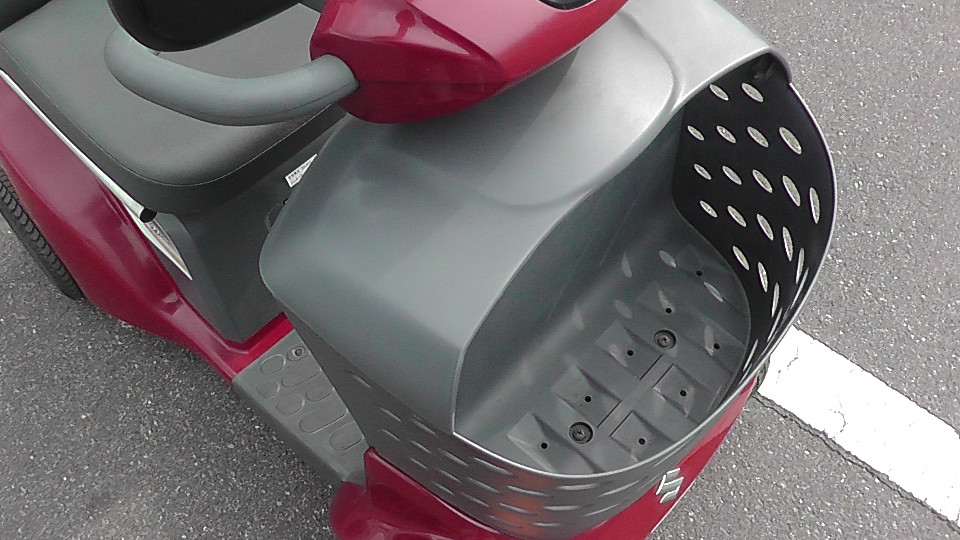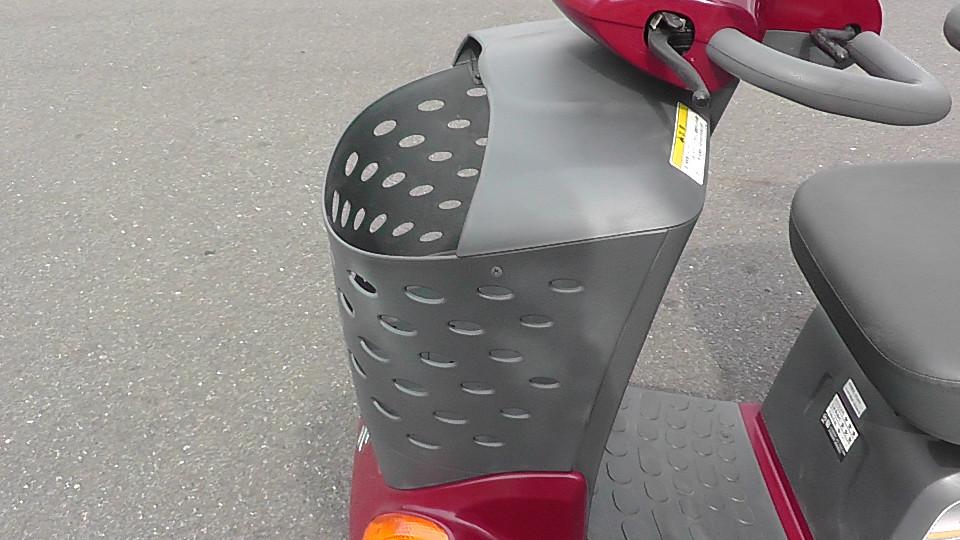 見やすく操作しやすいハンドルまわり、速度調整もでき、異常や傾斜を音声やブザーで知らせてくれる機能、傘や杖の収納ポケットと買い物に便利な大型バスケットなど、充実した快適装備のセニアカーです。